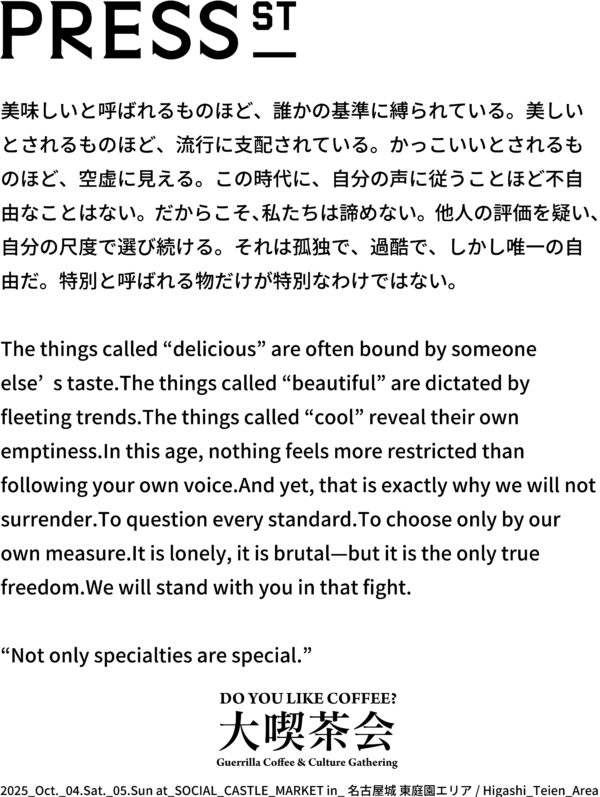 私たちはコーヒーを中心としたカルチャーを発信し、それをストリートにプレスします。